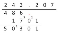 Um allerdings stellenwertrichtig zu handeln, macht man neben dem vorherigen Ergebnis einen Punkt.