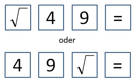 Unterschiedlich ist nicht nur das Aussehen der Quadratwurzeltaste, sondern auch die Eingabe.