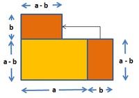 Von der Länge des Rechtecks (a + b) wird b ageschnitten:
