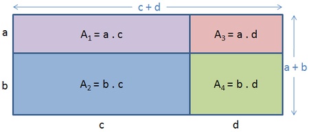 Multiplikation von Summen, wenn beide Faktoren zweigliedrige Ausdrücke sind: