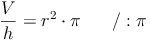 Um die Höhe und Pi vom Radius zu trennen, dividieren wir beide Seiten durch die Höhe und P und ziehen anschließend die Quadratwurzel: